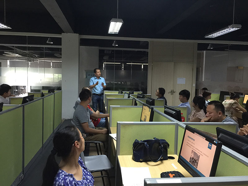 此次會議為期兩天,內容充實,7月12日上午主要是常務副總經理、技術總監翁高飛老師介紹了公司的發展現狀及未來的發展規劃,介紹了ECDIO工程教育模式的核心思想,荊職校區負責人李杰老師分享了分類培訓與因材施教的具體實施,技術中心涂建老師分享了“基于項目驅動微課設計”的設計流程。當天下午各位老師動手實踐微課設計,翁總對老師在制作中出現的問題及時給予講解。7月13日,專業老師制作微課并進行宣講由技術中心進行點評,武漢厚溥企業陳董事長也對微課設計的背景及其長遠的規劃做了重要講話。