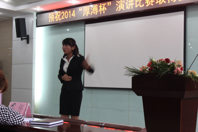 2014年10月31日,“厚溥杯”演講比賽決賽如期在光谷軟件園C6棟109多功能會議廳舉行。評委會由武漢景寧人力資源服務(wù)有限公司、武漢厚溥教育科技有限公司專家及各高校教務(wù)相關(guān)領(lǐng)導(dǎo)組成,通過嚴(yán)密的賽制,最終決出特等獎1名、一等獎3名、二等獎5名、優(yōu)秀獎8名,而優(yōu)秀指導(dǎo)老師則被湖北三峽職業(yè)技術(shù)學(xué)院劉靚老師獲得。