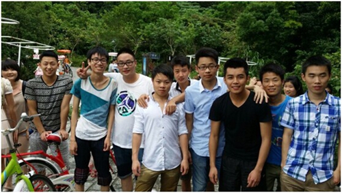 同學(xué)們?cè)跅蠲房域T單車留影