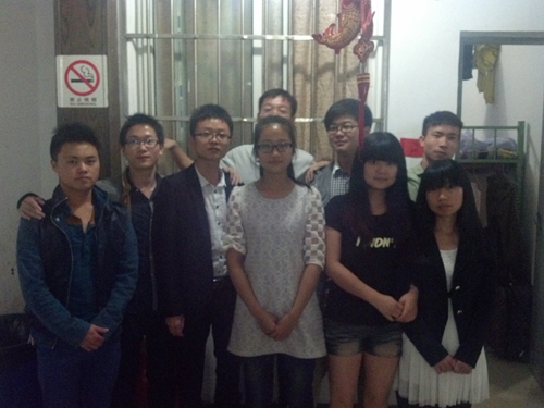 2014年5月11日,景寧老師和已經(jīng)就業(yè)的同學(xué)們在學(xué)生宿舍留影。