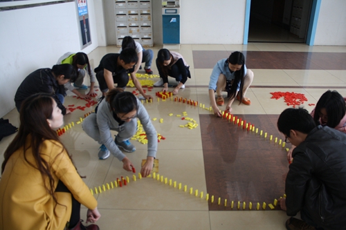 此次活動與前三屆比賽相比,任務難度有所加大,個別任務點需耗時40分鐘才能完成,比如個性點—多米諾骨牌,項目道具包含5萬塊骨牌,每隊領取相應的多米諾骨牌,按照參考圖型,由紅色、黃色、紅色三個小方塊擺放成多米諾圖形,并能成功形成多米諾效應。此項任務考驗了團隊成員之間的協(xié)調能力以及團隊的凝聚力。