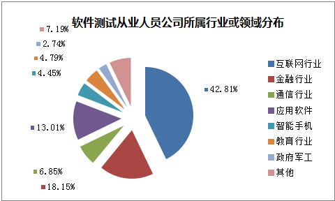 數據顯示,被調查測試人員所屬公司中,互聯網行業及金融行業分別占42.81%和18.15%,綜合占比超過六成,這也印證了經濟結構調整的成果,目前互聯網行業和金融行業受到了投資者和個人的青睞,企業需求急劇上升,軟件測試人才缺口巨大。